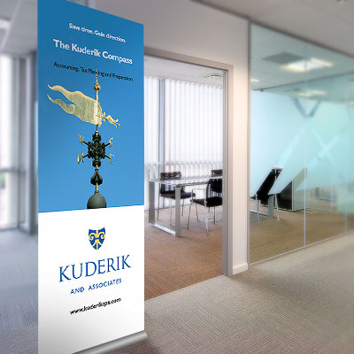 Mr. Kuderik’s business is tax preparation and tax planning for individual and business clients. We took his interest in European architecture and travel and gave him a Continental flair.
